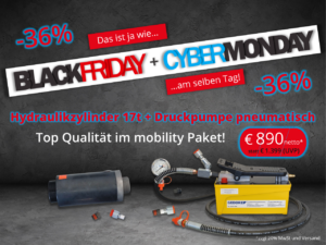 Druck bekommst du mit dem mobility Hydraulikpaket 17t. Universell für rund 20 Werkzeuge aus unserem Onlineshop einsetzbar. Jetzt Top-Qualität um nur 890 Euro kaufen. Aktion gilt bis 30. November 2021.