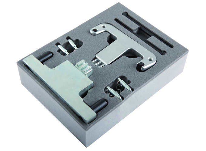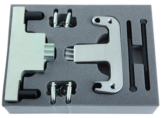Werkzeugsatz mit dem Sie die Nockenwelle und die Kurbelwelle beim Wechseln der Steuerkette richtig positionieren können.
